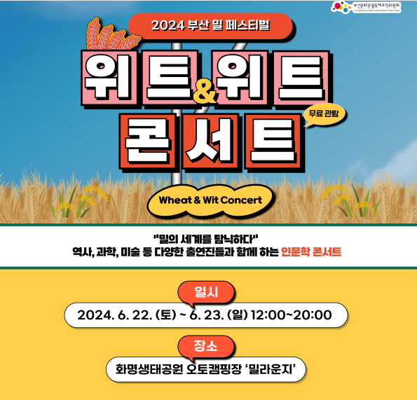 우리 일상에서 흔히 접는 '밀(Wheat)'을 주제로 다양한 나라의 음식문화와 음식사를 탐방할 수 있는 특별한 경험을 제공하기 위해 마련되었습니다. 또한, 이번 행사는 한국전쟁 이후 주요 밀 집산지로서 중요한 역할을 해온 북구의 역사를 배경으로 밀과 관련된 다양한 콘텐츠와 함께 북구의 역사와 문화를 돌아볼 수 있도록 할 예정입니다.