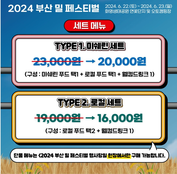 전국 로컬 맛집부터 미쉐린 선정 맛집까지 다양한 음식을 즐길 수 있는 프리미엄 푸드코트인 밀 푸드 편집샵도 준비되며, 밀 푸드 트럭과 감미로운 버스킹까지 스트릿 푸드 라운지도 준비됩니다. 우리 밀 전시에서 우리 밀과 친해지고 플리마켓도 구경하면서 다양한 프로그램을 즐길 수 있습니다. 2024 화명생태공원에서 진행되는 부산 밀 페스티벌 다양한 축제 프로그램과 체험 행사가 준비되어 있으니 페스티벌에서 참여하셔서 아이들과 가족들 다 같이 즐겁고 뜻깊은 시간이 되세요.